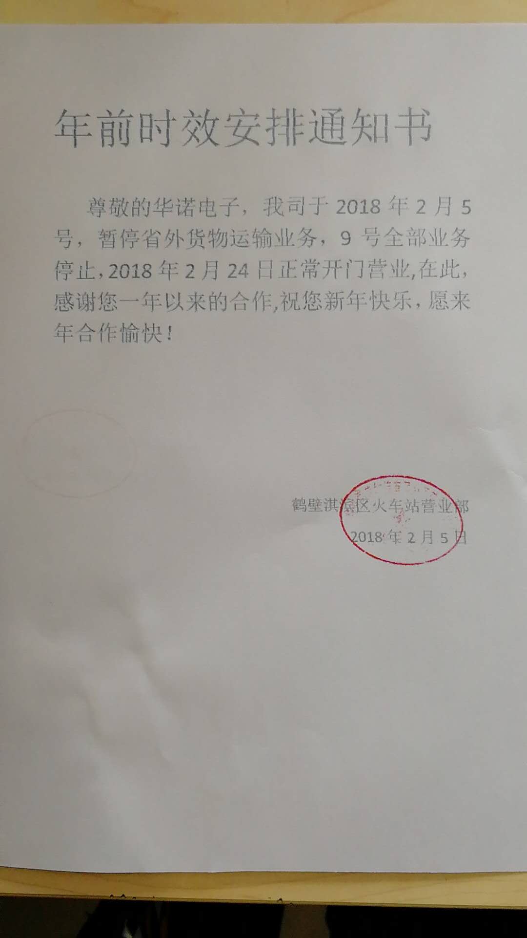 2018年春節(jié)假期將至,為方便您合理安排訂貨時間、保證我司正常的供貨周期,現(xiàn)將物流假期日期公布如下: