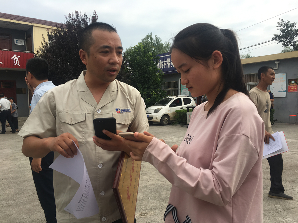 鶴壁華諾電子科技有限公司銷售部張經(jīng)理為受助學(xué)生發(fā)放助學(xué)金