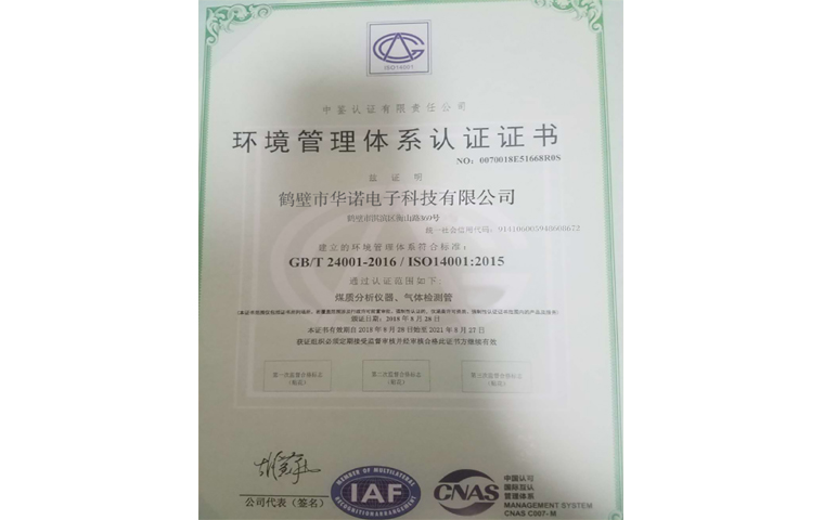 環(huán)境管理體系認(rèn)證證書